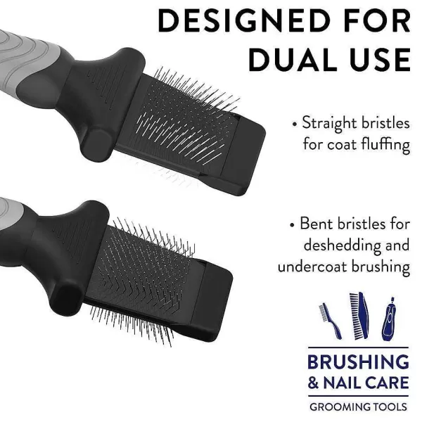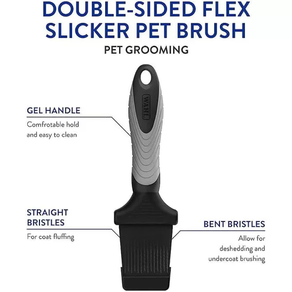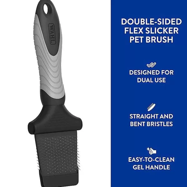 The Wahl Double-Sided Flexible Slicker Brush Provides Gentle Brushing For Thick Coats And Tangled Dog, Cat, And Pet Hair. Straight Bristles Offer Coat Fluffing While Bent Bristles Allow For Deshedding And Undercoat Brushing. Features An Easy-To-Clean Gel Handle. Suitable For All Sizes, Coats, And Breeds Such As Bichon Frise, Terriers, Miniature Poodles, German Shepherds, And Collies. Since 1919, Wahl Clipper Has Been Manufacturing Quality Products For Professionals And At-Home Users Alike. They Are Proud Of Their Heritage And Standard Of Integrity, Value, And Quality.
