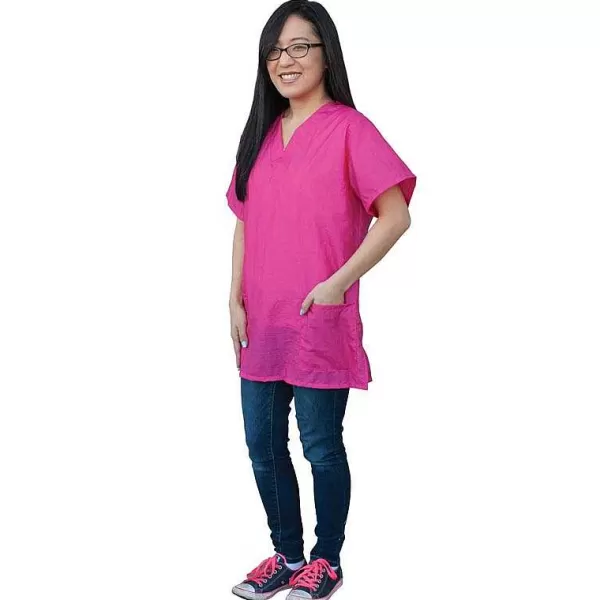 Scrub Tops Are Made In Usa With 100% Lustrous Antron Nylon That Has Been Teflon Treated To Repel Hair, Water, And Chemicals. The Fabric Is Very Comfortable And Lightweight. Scrub Top Has V-Neck With Two Front Pockets. Small-X-Large Choose From Black, Plum, Royal Or Wine.