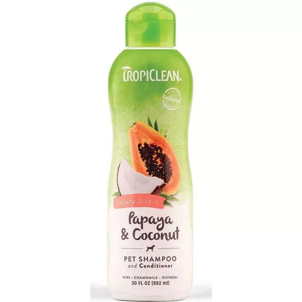 Tropiclean Luxury 2-In-1 Papaya & Coconut Pet Shampoo & Conditioner Brings A Luxurious Lather To The PetâS Bath Time. Conditions As It Cleans, To Replenish Moisture Into The Skin And Coat. High Quality Ingredients Like Oatmeal And Chamomile Soothe Skin, Coconut And Mango Relax Fur For Brushing And Eliminate Static. This 2-In-1 Shampoo & Conditioner Provides A Rich, Luxurious Lather And Leaves Behind A Refreshing Tropical Scent For Sweet Snuggles.